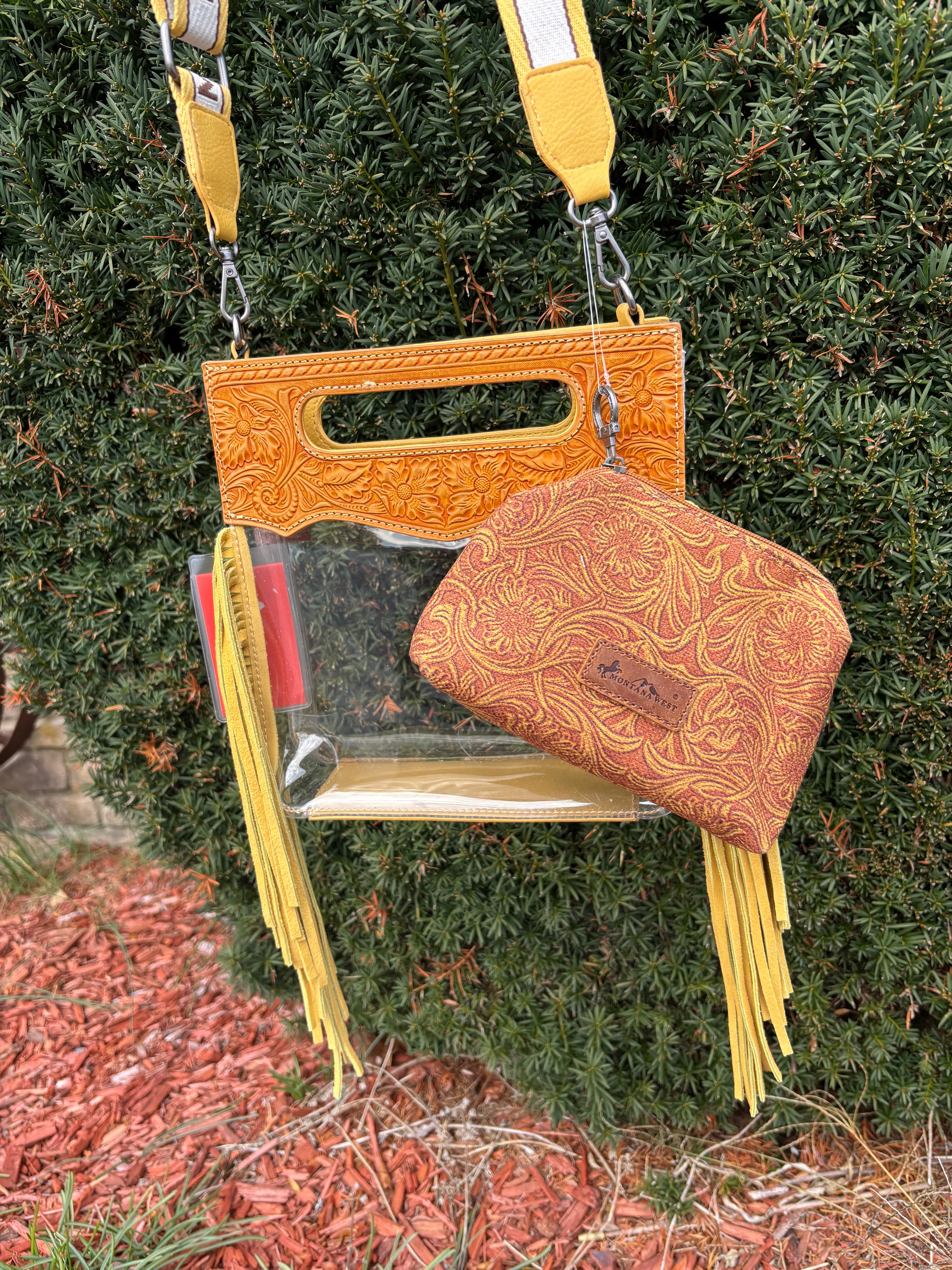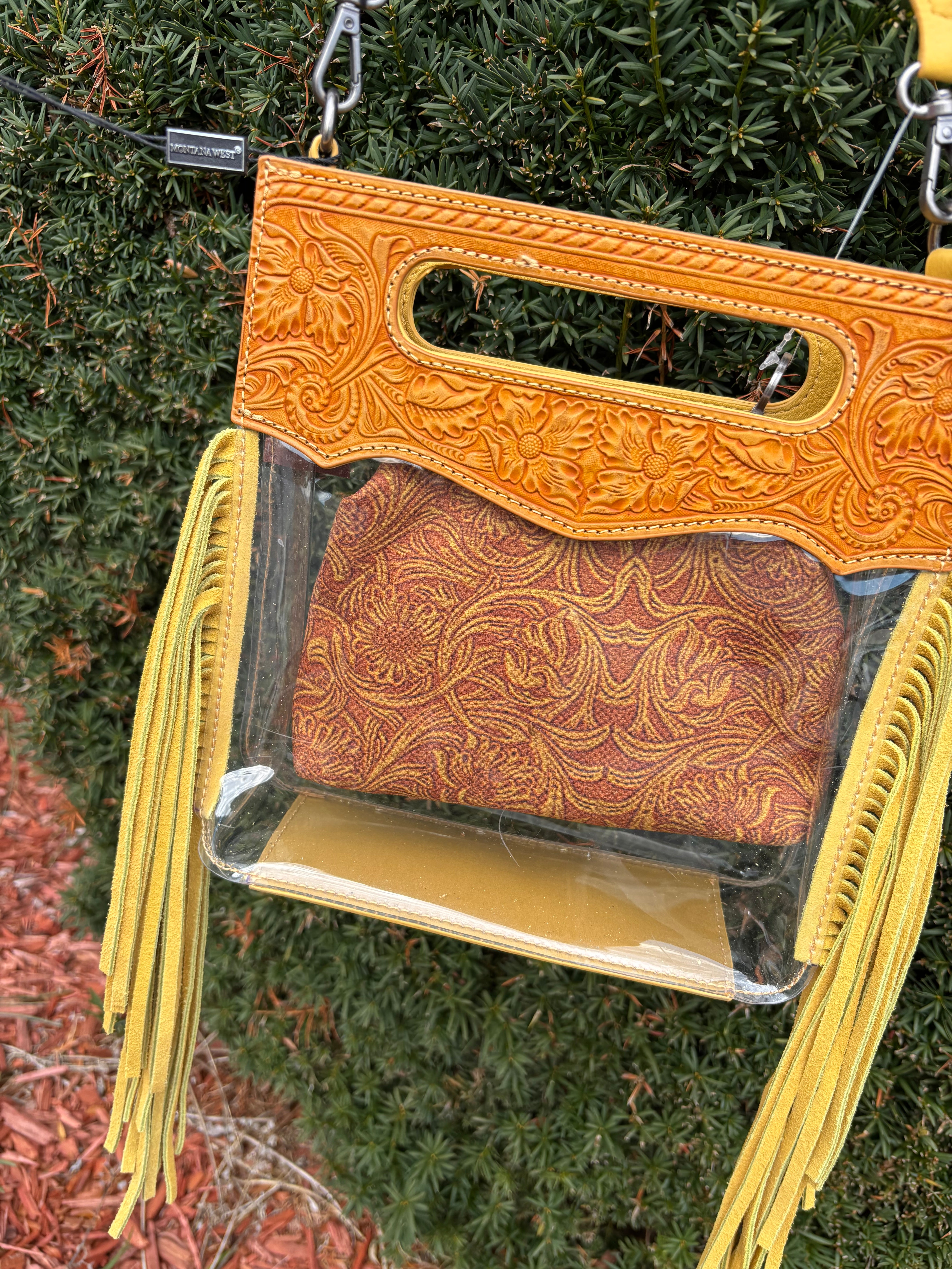 This Montana West clear purse with fringe is a stylish and functional accessory. With its clear design, you can easily find your essentials. The included wallet provides additional convenience and organization. Perfect for any outing or event, this purse is both trendy and practical.