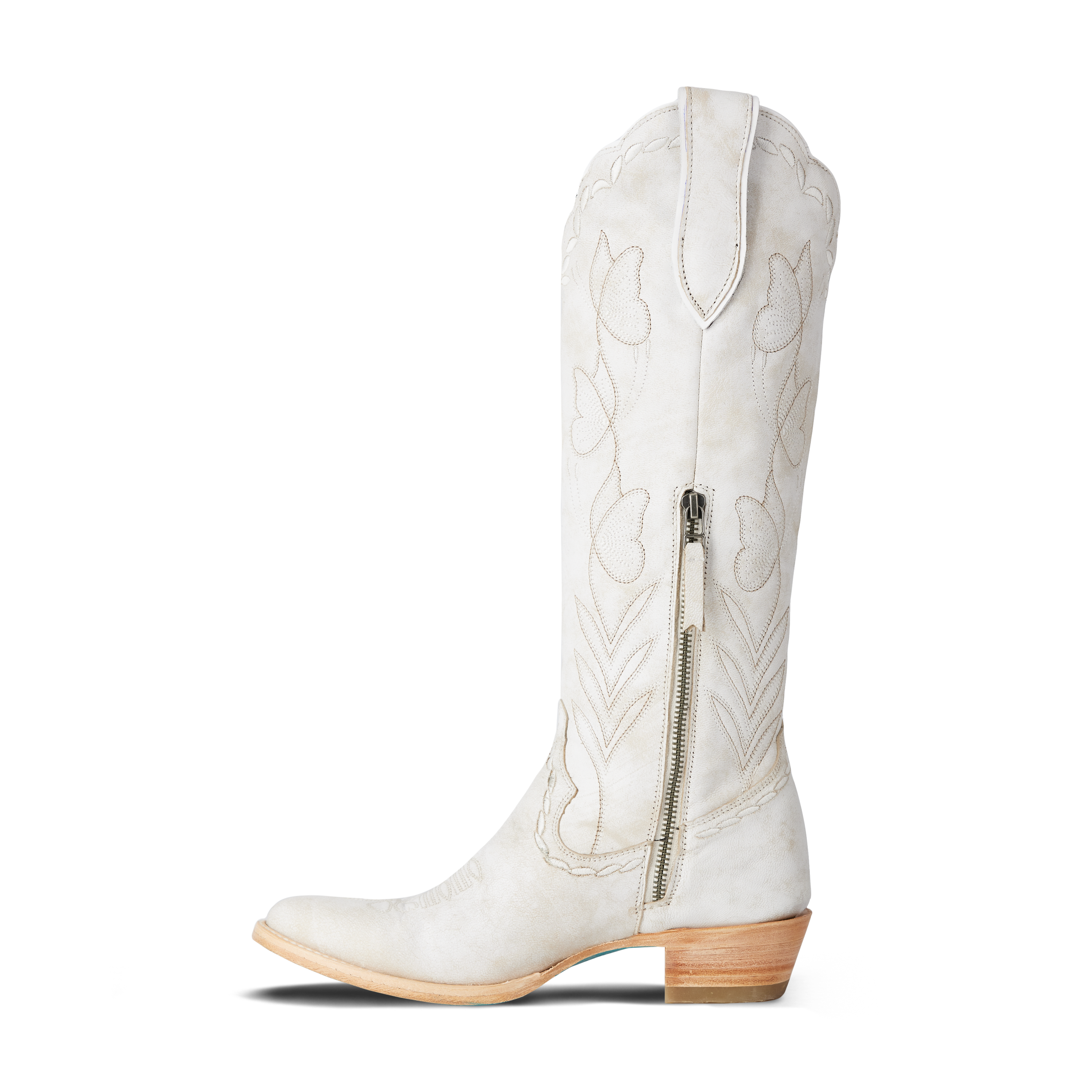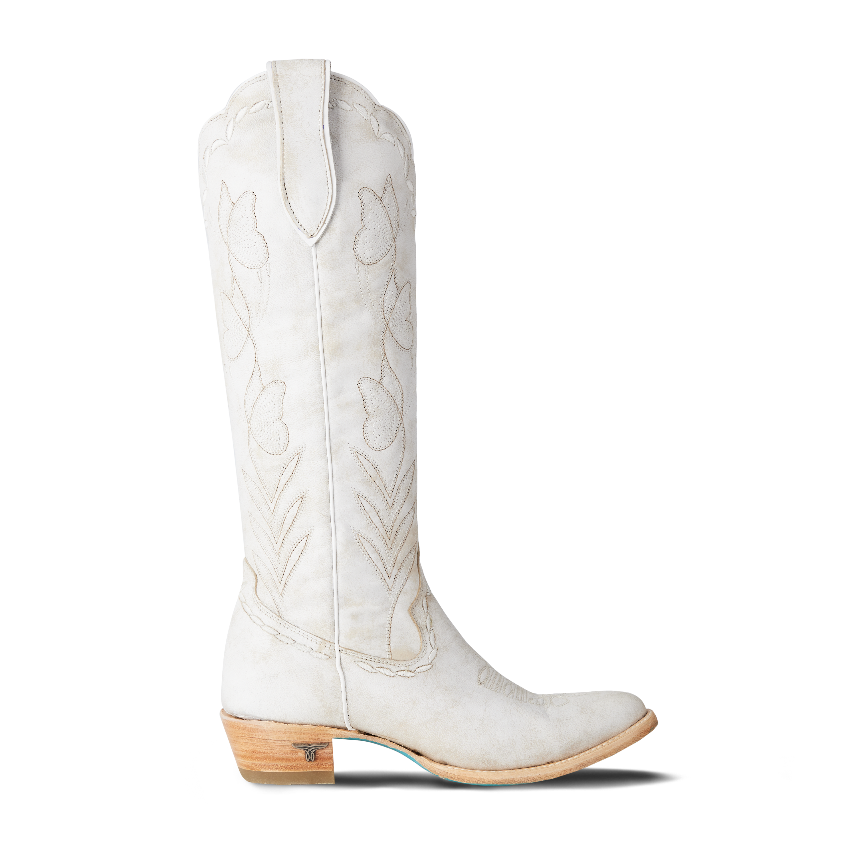 Crafted in luminous ceramic crackle leather, this boot features elegant scalloping, delicate butterfly stitching, and whimsical floral-inspired edging—each detail thoughtfully placed to create a truly special, one-of-a-kind design. Finished with Lane’s signature turquoise soles, Sweet Memories is as symbolic as it is stunning.