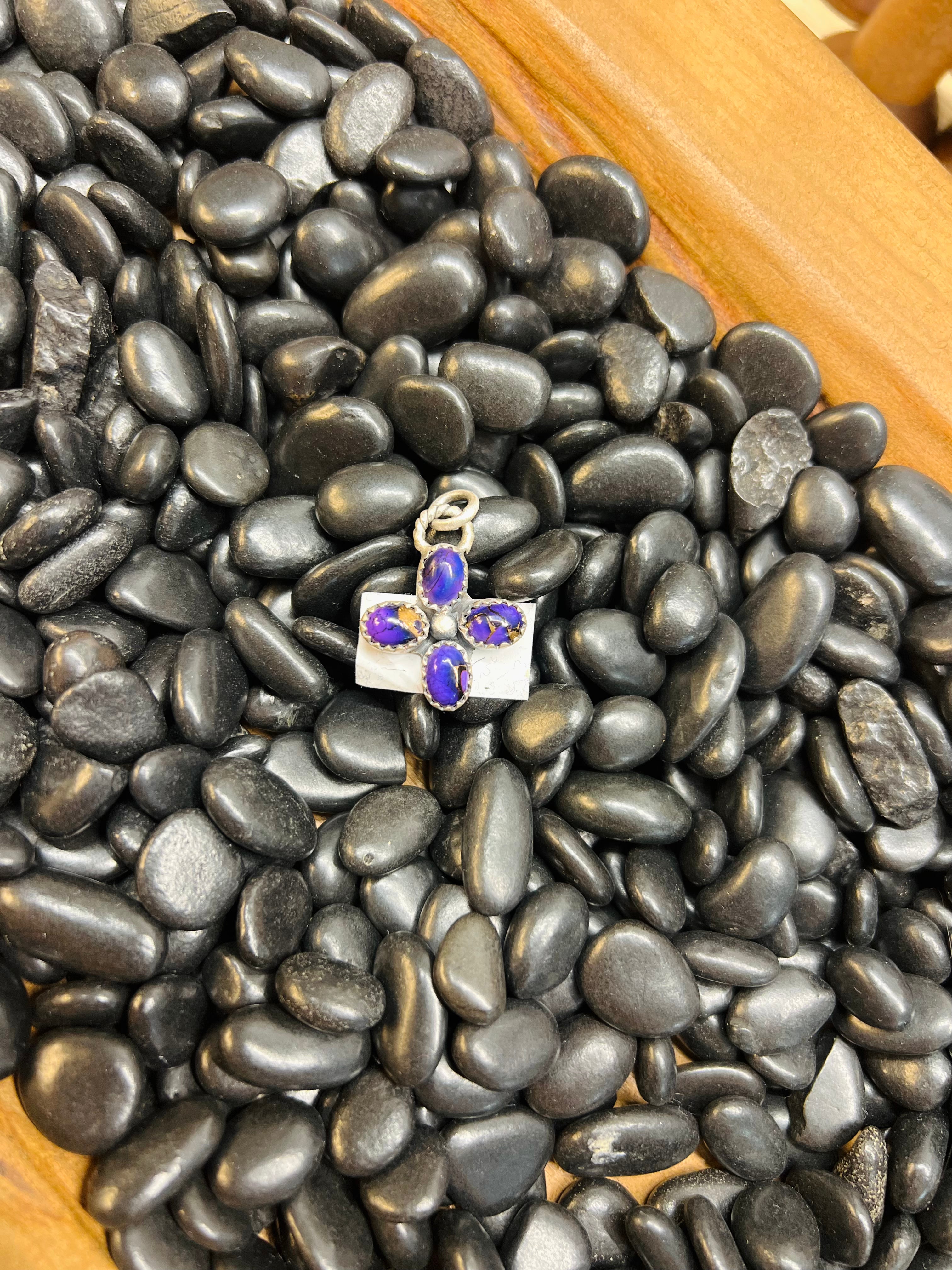 The Purple Mojave Pendant features a unique blend of rich purple hues set in sterling silver. This combination not only enhances aesthetic appeal but also ensures durability. The pendant's high-quality materials make it suitable for various occasions, complementing both casual and formal attire.