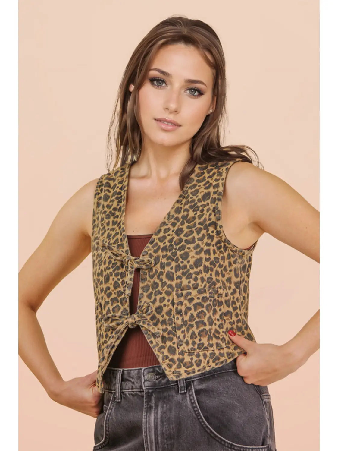 Leopard Denim Tie Vest