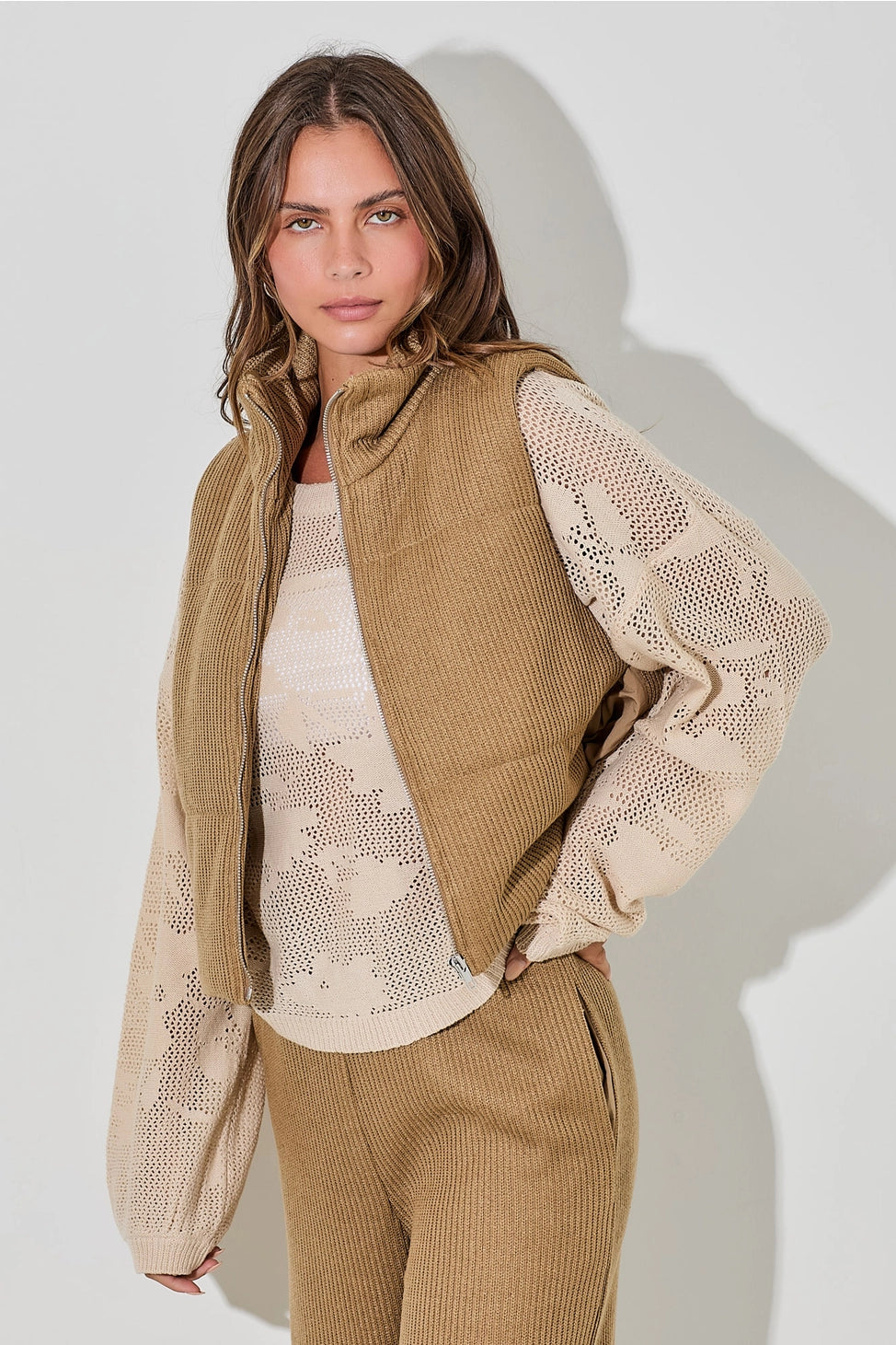 Layer up with effortless style in this textured puffer vest! Perfect for those chilly days when you want warmth without the bulk, this cozy piece adds instant dimension to any outfit. The quilted texture catches the light beautifully, while the lightweight fill keeps you comfortable whether you're running errands or cozying up outdoors. Pair it over your favorite sweater or tee for a look that's both practical and undeniably cute. Your go-to vest for looking put-together, no matter the season!