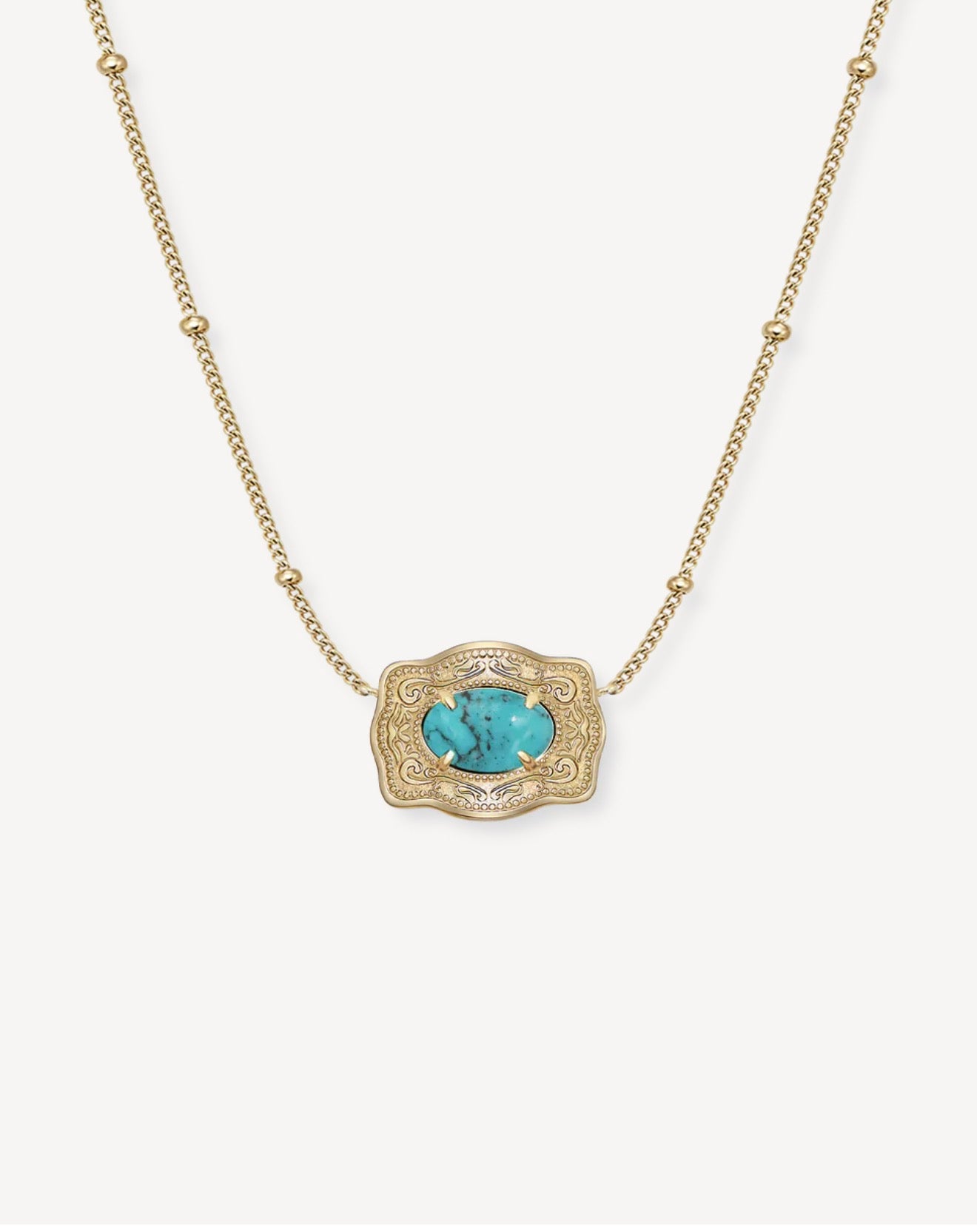 - A SpurWest original, our Ultra Mini Belt Buckle Necklaces are a jewelry piece you won't find anywhere else. Crafted with precision, our unique buckles feature a brilliant gold shine with a 10K gold plating finish. Oasis features a single genuine turquoise stone. Tarnish-resistant and skin-friendly, these pieces stand tall as a new staple within the western community.