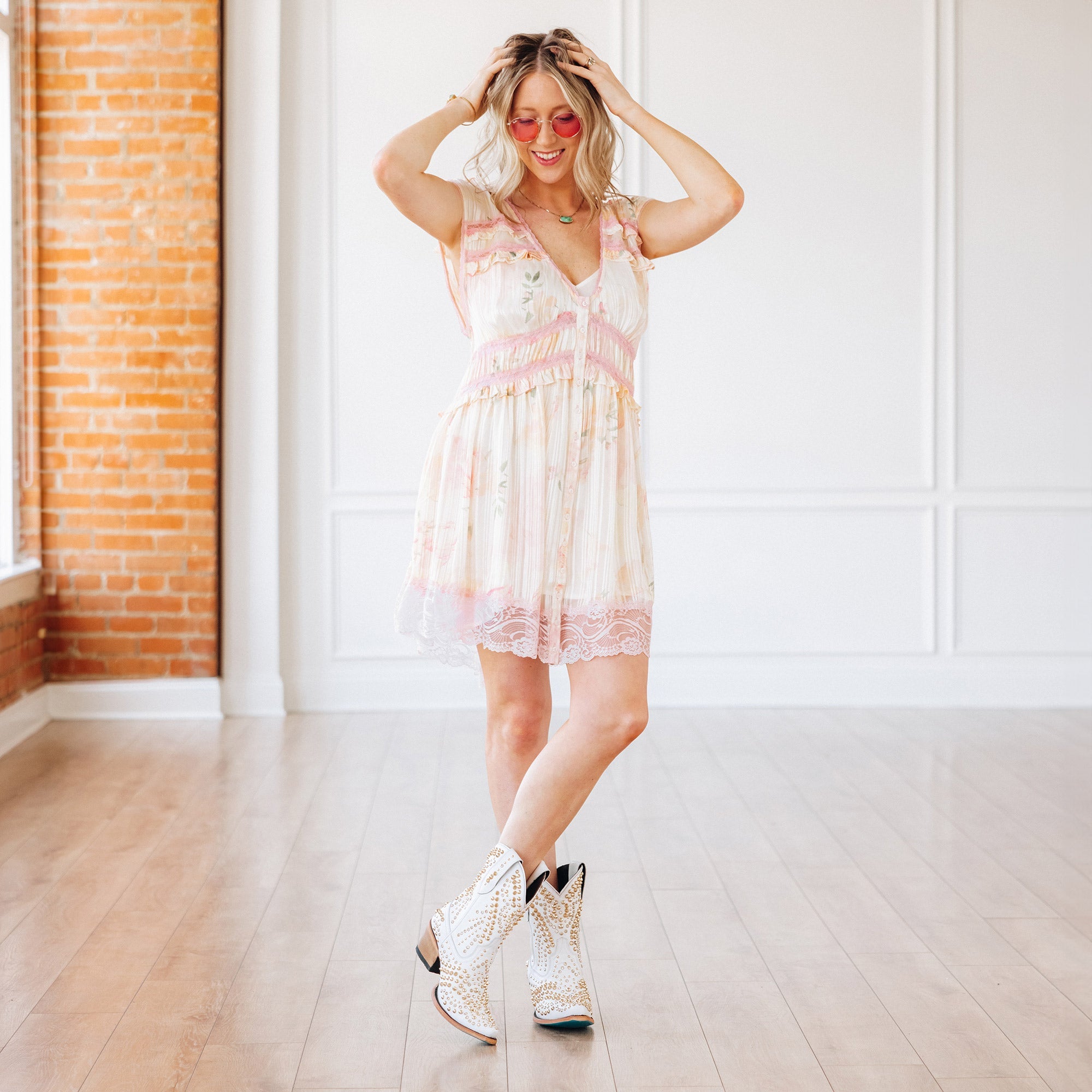 Step out boldly in this studded ankle boot baddie. An elevated heel accentuates your best features and brings confidence as you walk that walk.