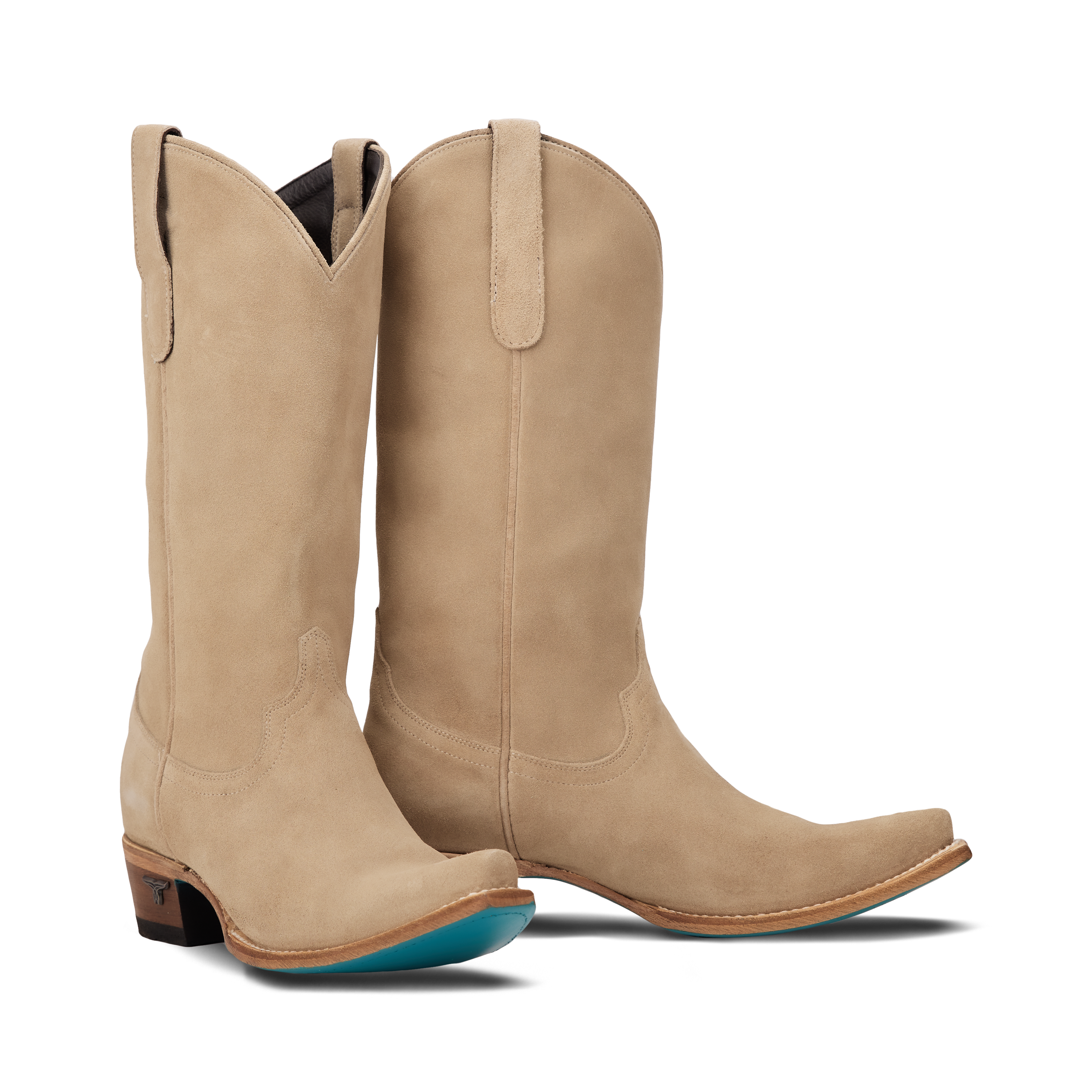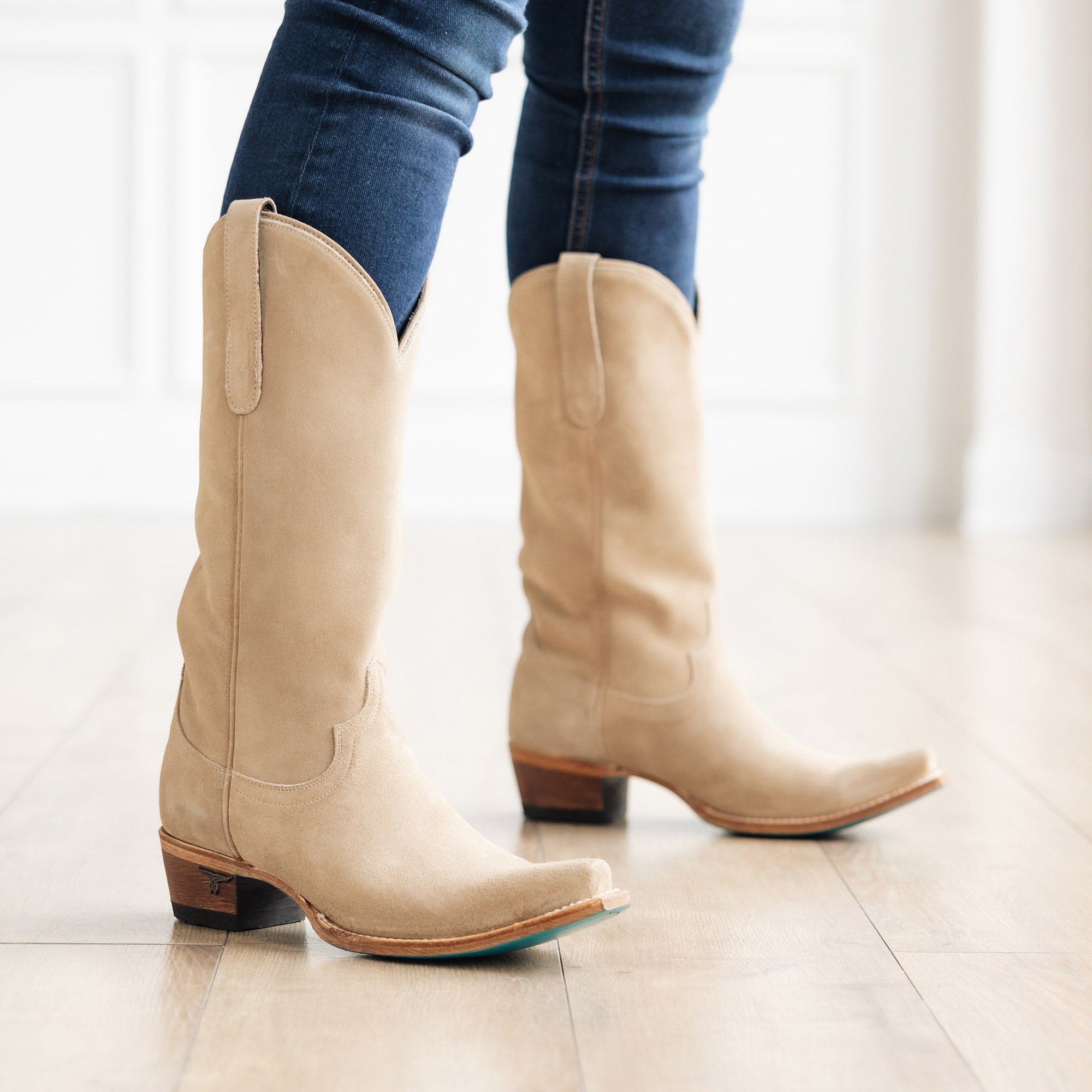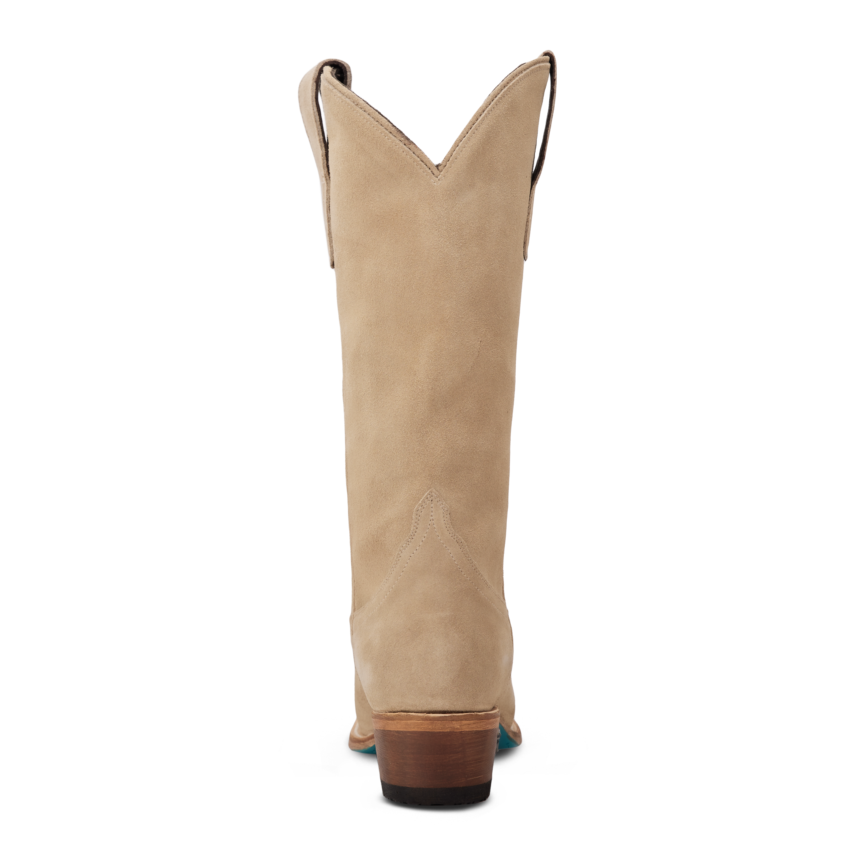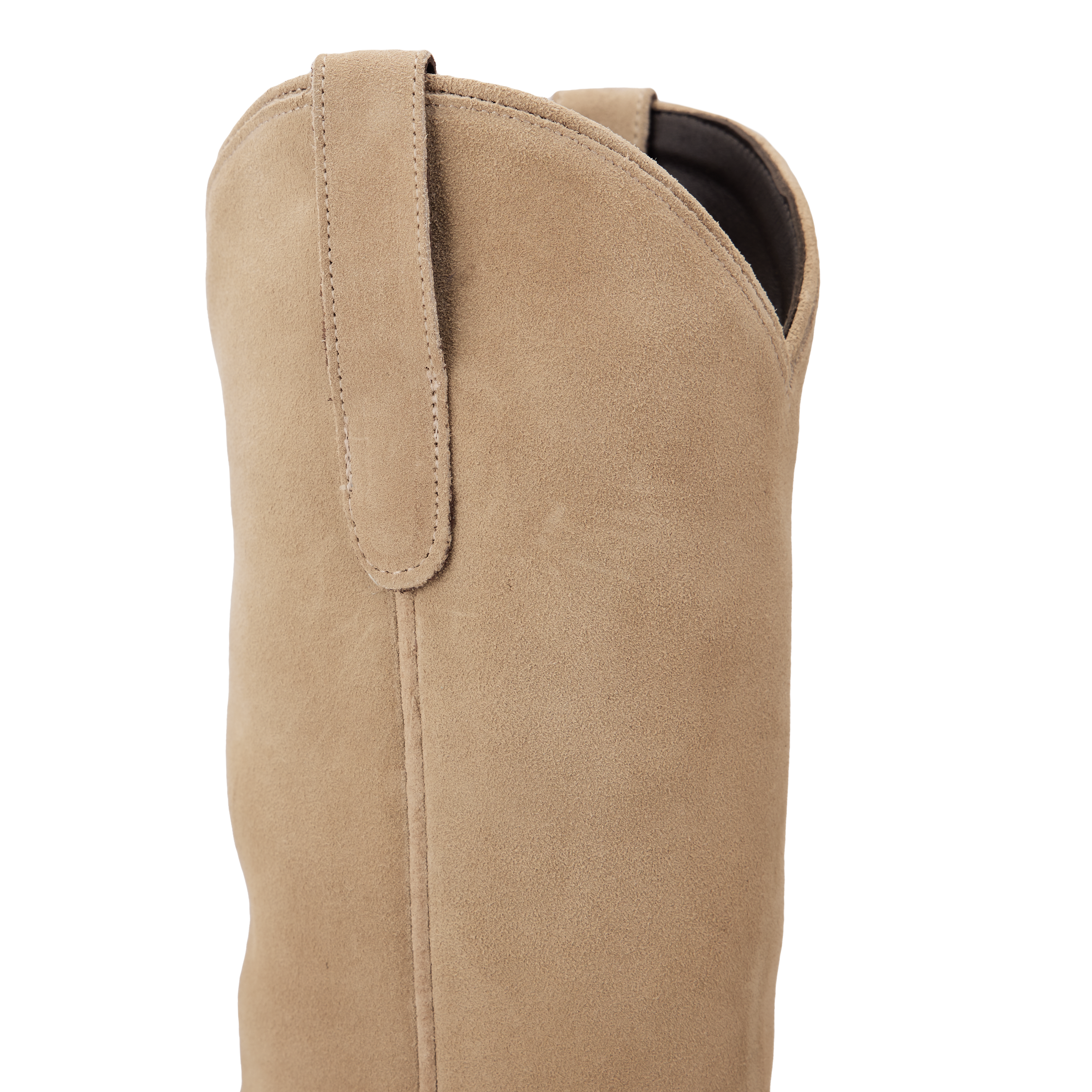 It's giving western. Timeless snip toe and classic cowgirl silhouette. Meet Emma Jane in Latte Suede.