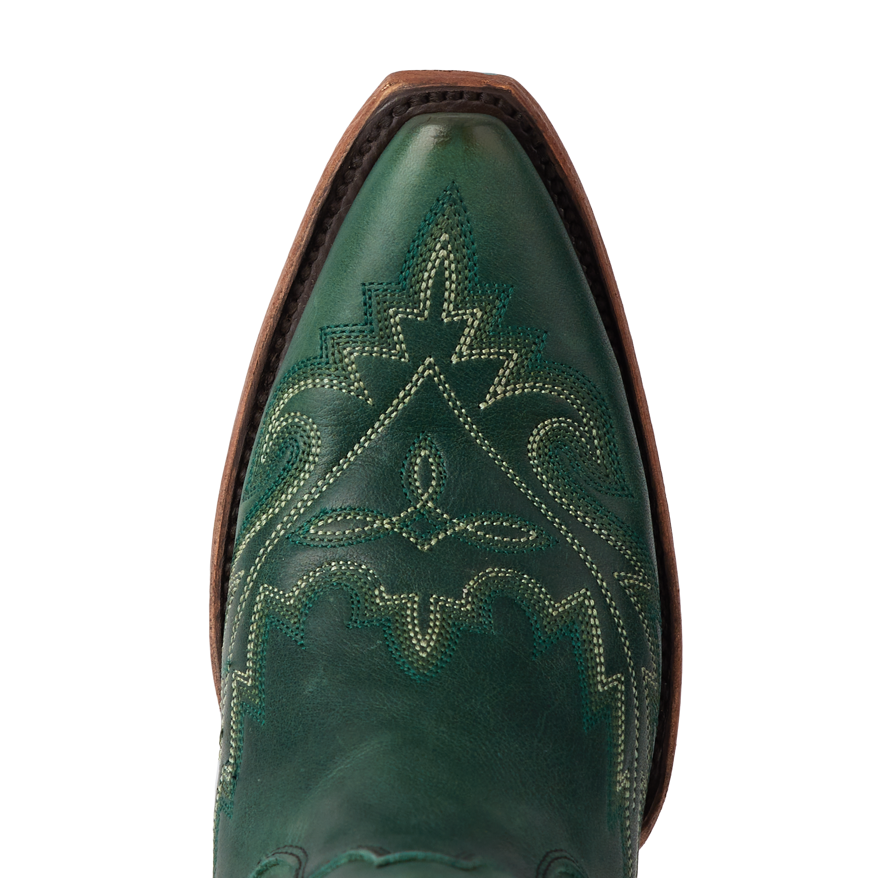 Heirloom quality with a core western influence. The classic snip toe profile is embroidered to perfection with a twist on traditional flame stitch and a functional corset back. The Lexington Knee-High is timeless and sexy all wrapped in one.