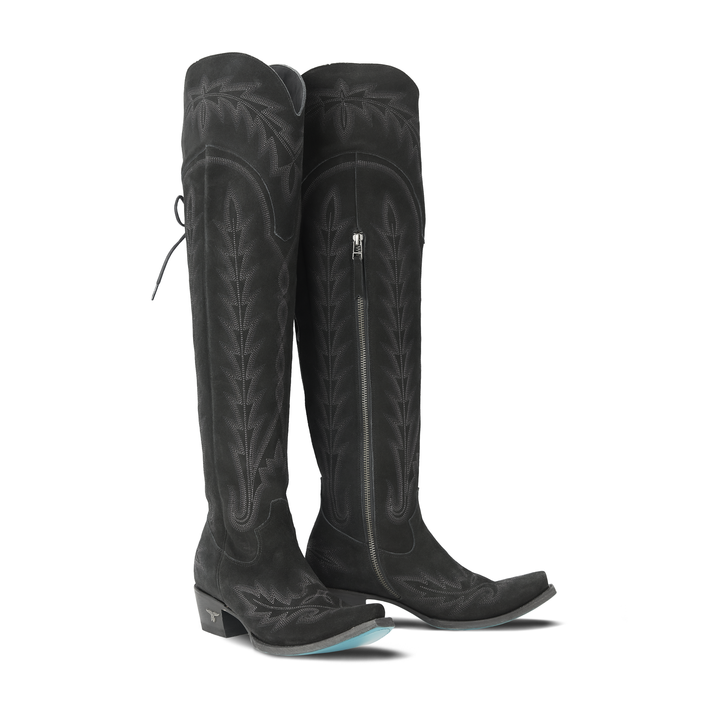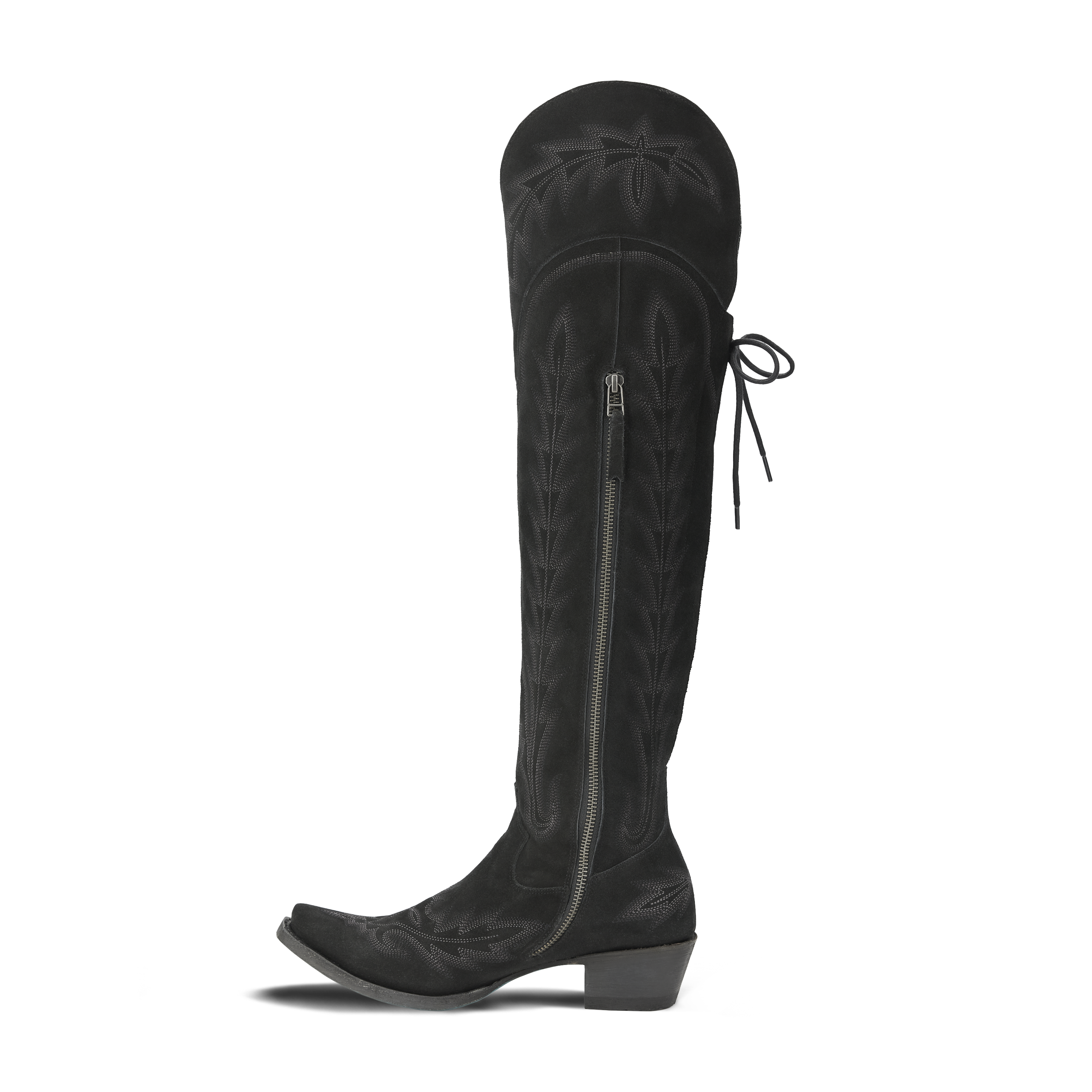 Sexy Over the Knee boot kicking classic retro stitch up all the notches.  Functional corset with wide tongue to accommodate all sexy leg types. Customize the corset to your leg one time and the easy in, easy out zipper will take care of the rest.