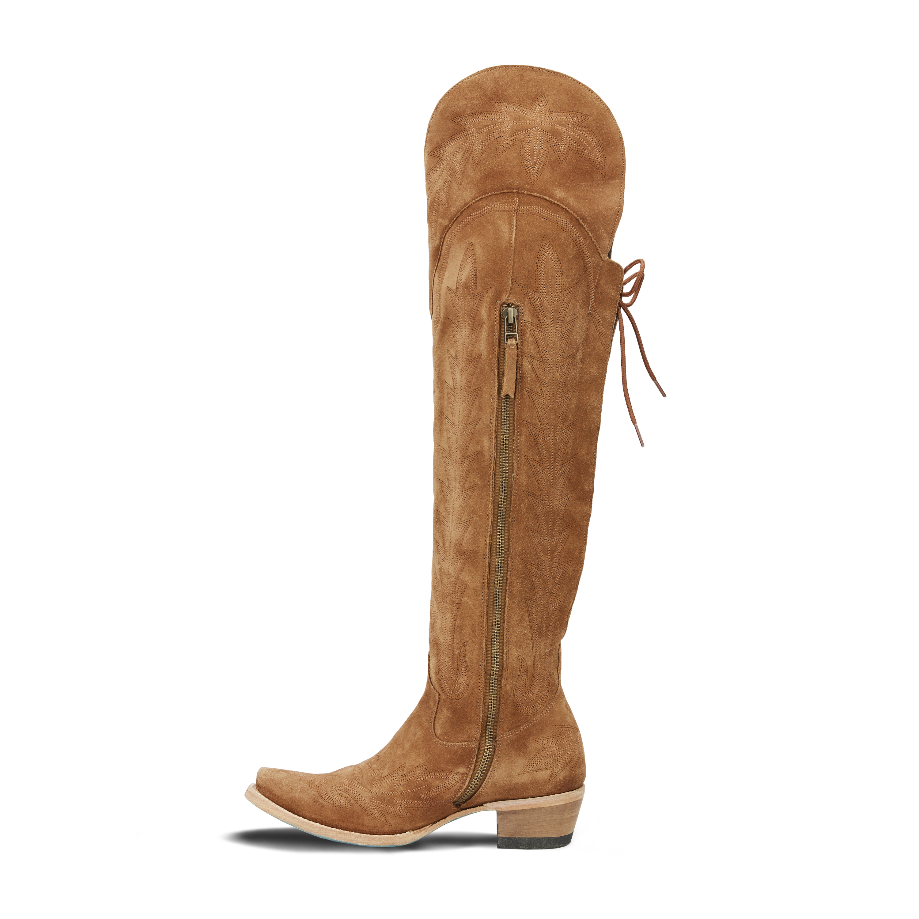 Sexy Over the Knee boot kicking classic retro stitch up all the notches. Functional corset with wide tongue to accommodate all sexy leg types. Customize the corset to your leg one time and the easy in, easy out zipper will take care of the rest.