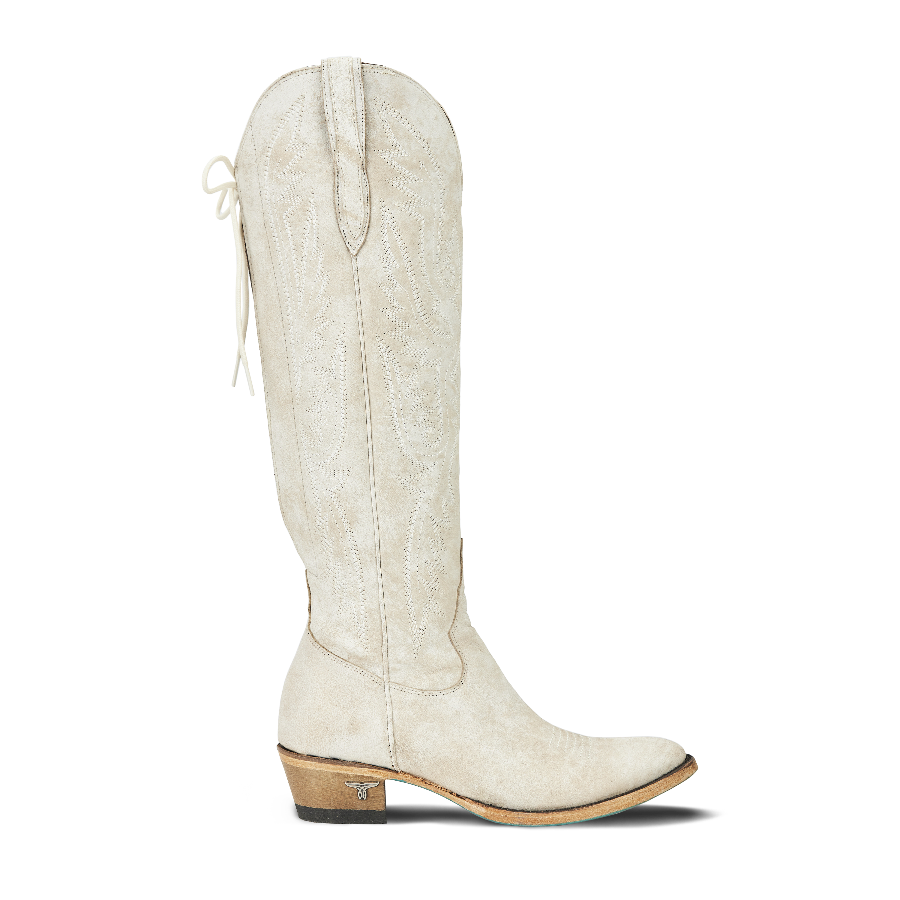 Heirloom quality with a core western influence. The classic snip toe profile is embroidered to perfection with a twist on traditional flame stitch and a functional corset back.