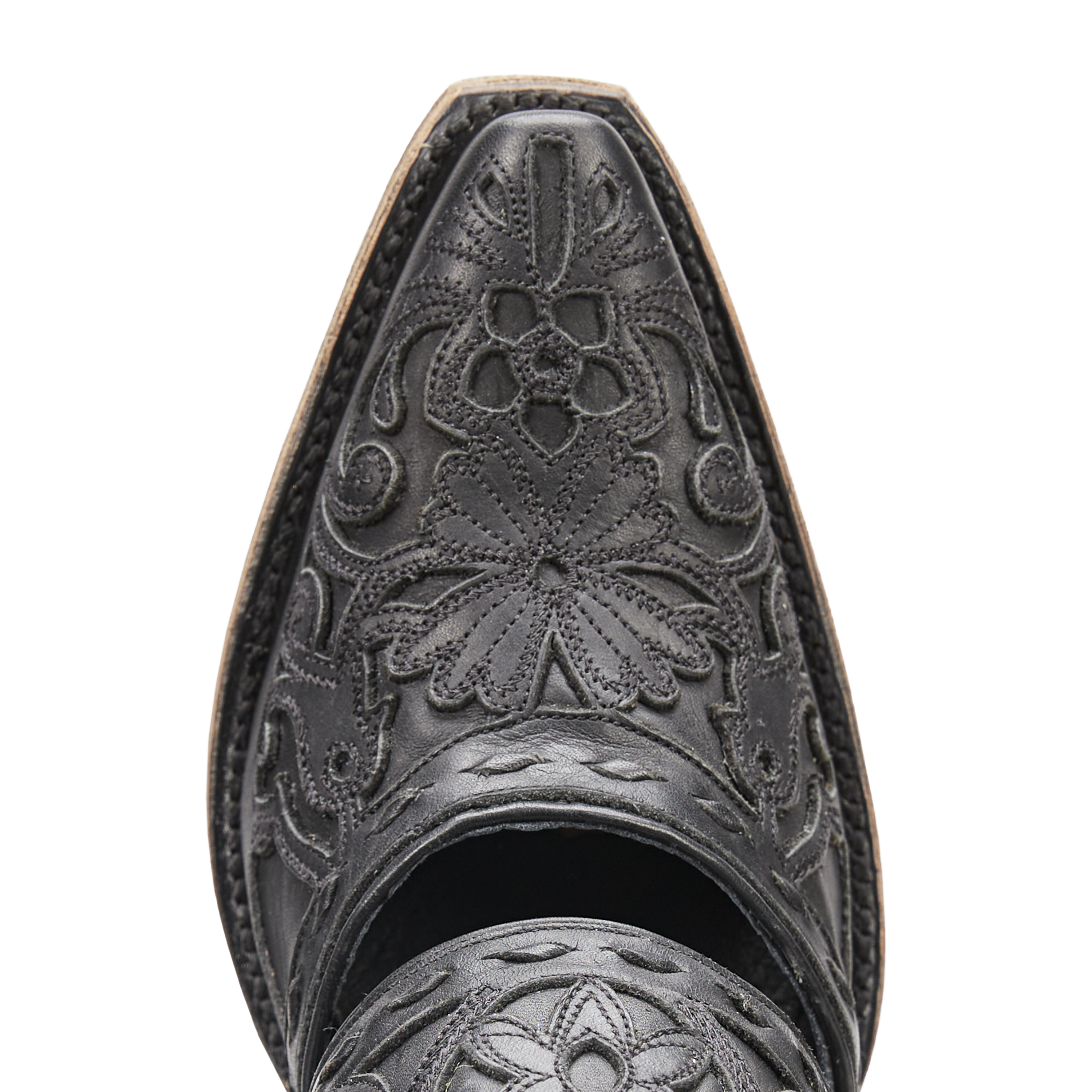 Our trendy take on an old classic, the Robin Slingback Mule in Jet Black is everything nostalgic about the iconic, retro, underlay boot while keeping it anything but expected. These intricate beauties are a class act paired with your best dresses, while also expertly highlighting your sense of casual style in beat up skinnies.