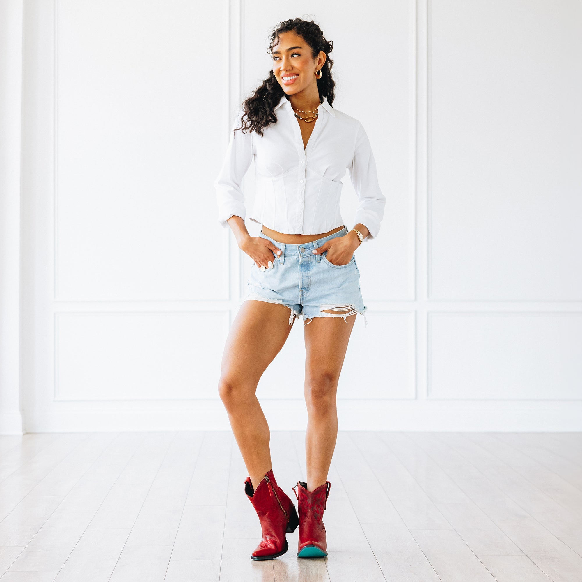 She's the same timeless renegade. A smoldering ruby cowgirl bootie right off the runway.