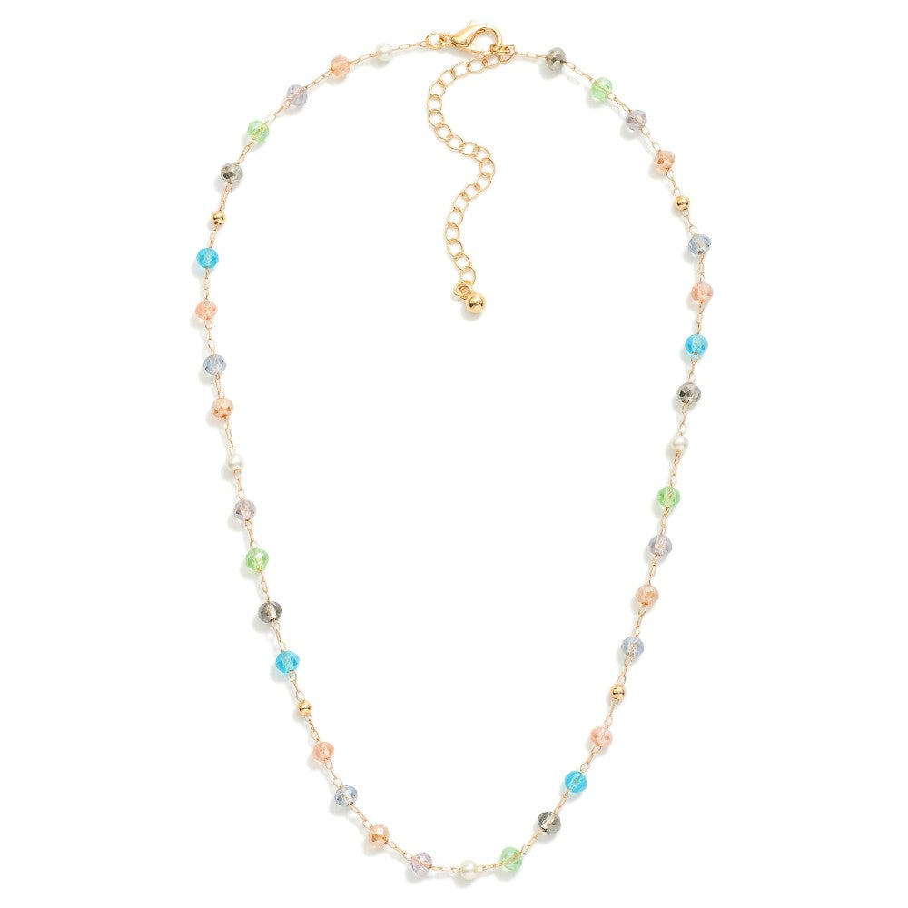 Expertly crafted with a delicate gold chain, this freshwater pastel bead & crystal necklace exudes elegance and charm. The pastel beads add a touch of soft color, while the crystals add a subtle sparkle. Perfect for any occasion, this necklace is a versatile addition to any jewelry collection.