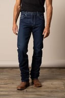 The Thomas features our bestselling cotton denim in a lower rise, straight fit jean. This 13 oz dark denim jean features our iconic Longhorn logo in embroidered detail on the back pockets.