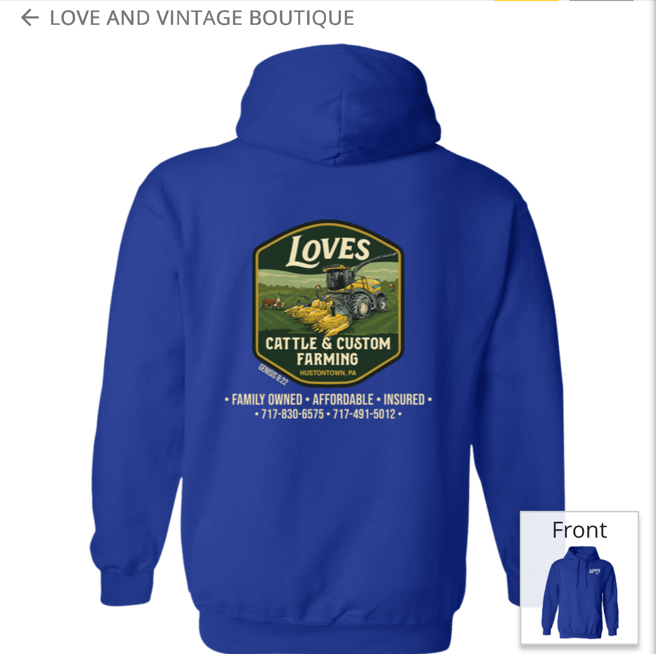 Love’s Cattle & Custom Farming Hoodies