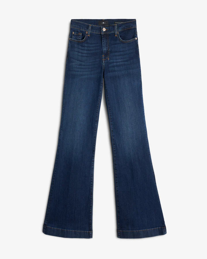 Fits like: Fitted through the hips and thighs. This mid-rise denim has a wide, full-length leg and a subtle flare for a long, lean silhouette.