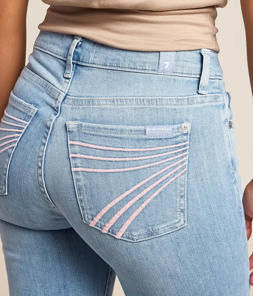 The 7FAMK Tailorless Indigo Bloom features premium denim that allows for full motion, enhancing comfort and flexibility during wear. This advanced fabric technology ensures durability while providing an optimal fit, making it suitable for both active and casual settings.