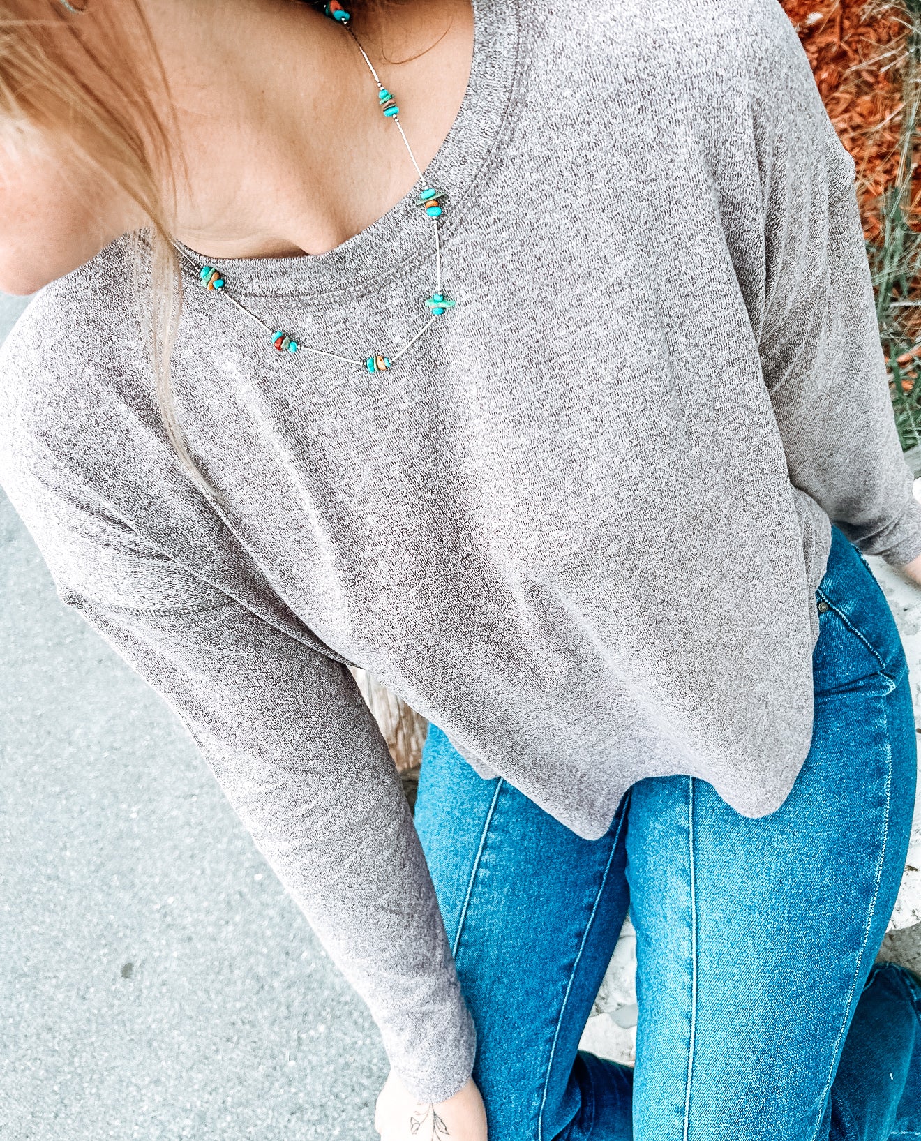 Crafted from our best-selling brushed Hacci fabric that feels as light and airy as a cloud, this long sleeve top is designed for effortless comfort and style. Featuring a relaxed fit with a single back pleat for added shape and movement, it’s the perfect layer for lounging, casual days, or wherever life takes you. Luciana is 5'9", a size 2, and is wearing an S 95% polyester, 5% spandex Four-way stretch Made in China