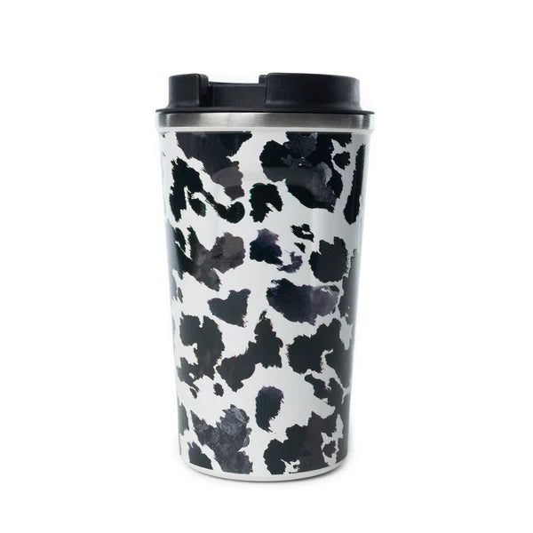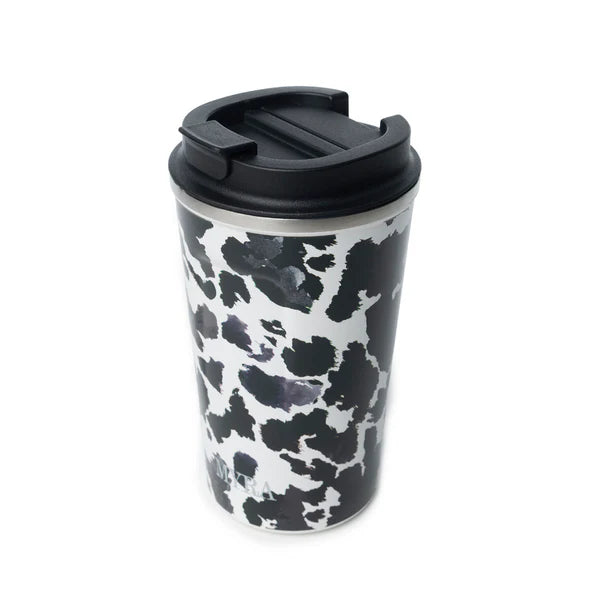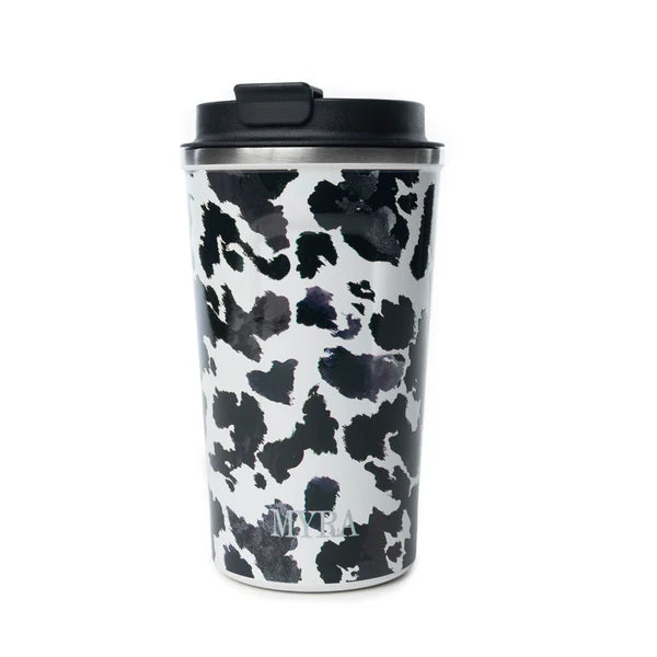 Sip on the go with this rugged yet refined coffee mug from Myra. Designed with a stunning Black Leopard Print motif, the stainless steel build keeps your favorite brew at the perfect temperature. Whether you're headed to the ranch or just out the door, this coffee tumbler combines durability with Western flair, an everyday mug that speaks to your wild and practical side.
